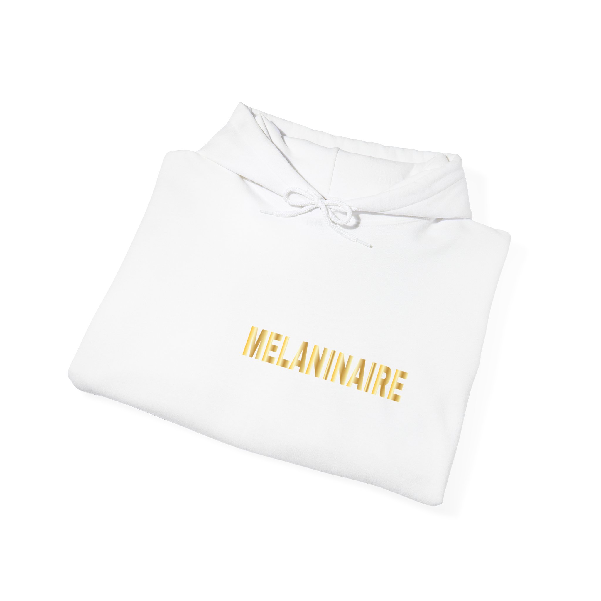 A soft, confident hoodie that speaks with quiet style. This medium-weight sweatshirt wraps you in breathable warmth while a subtle gold-tone MELANINAIRE print across the chest adds poised, understated flair. The roomy kangaroo pocket and double-lined hood make it a go-to for slow mornings, late-night study sessions, and easy weekend hangs. Clean lines, smooth fabric, and ethical sourcing let you wear it with intention — whether you’re layering out the door or lounging at home.
